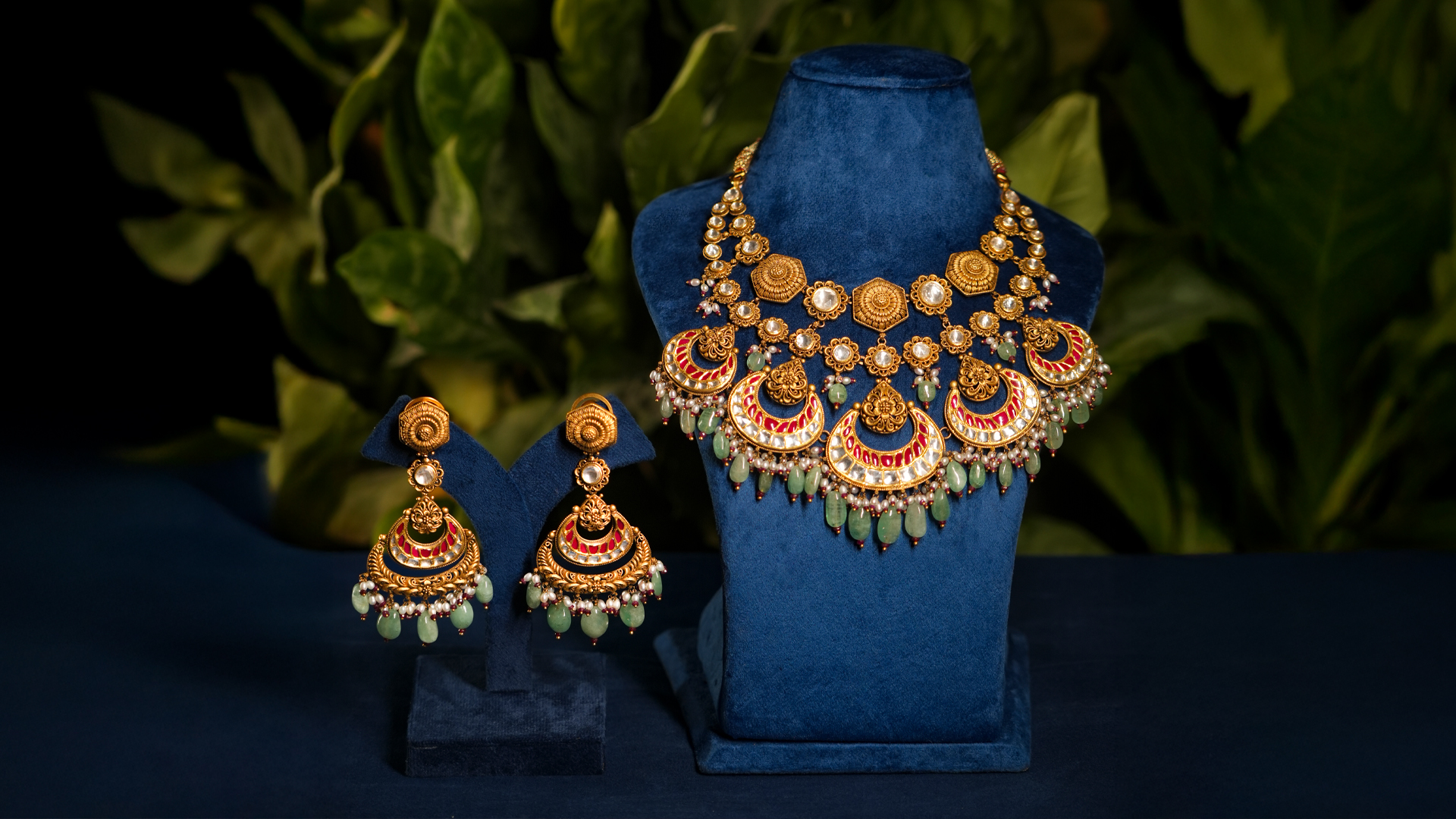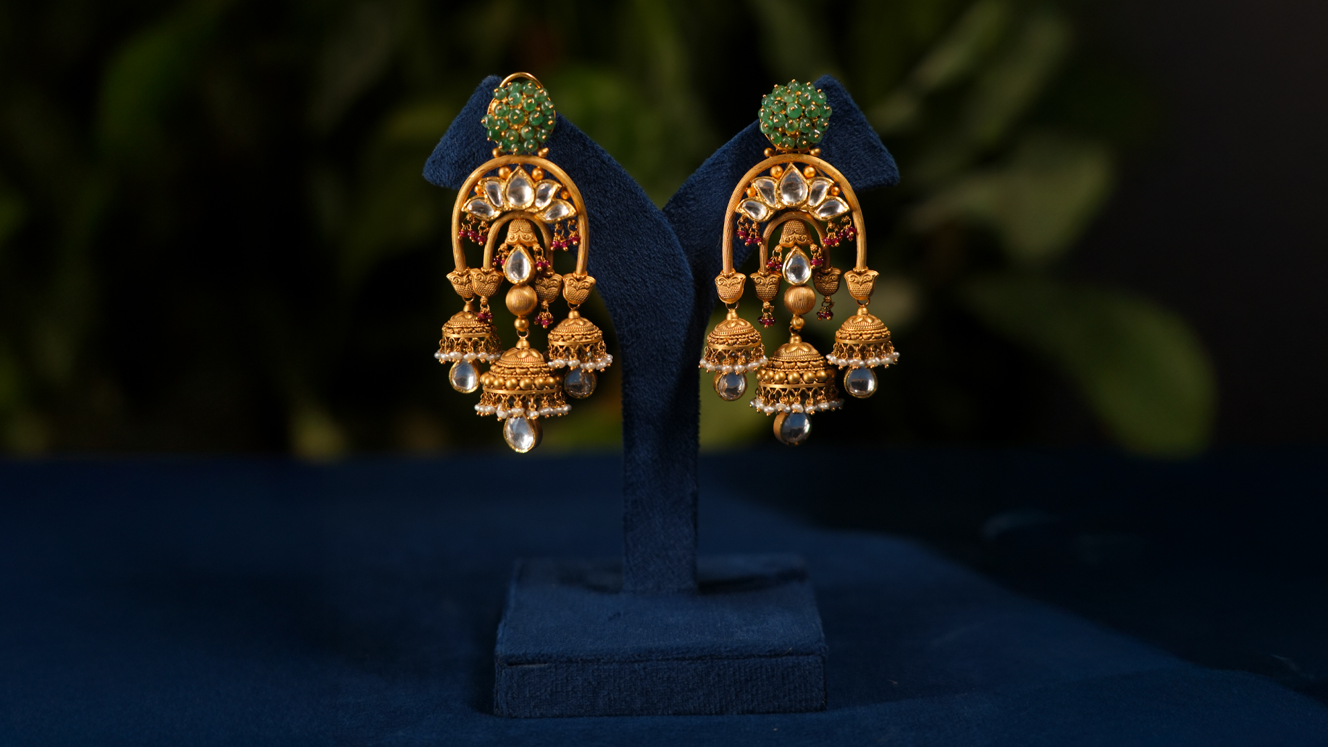 Delicate gold intricacies, shimmering gemstones, and graceful jhumkas—crafted to capture the soul of luxury.