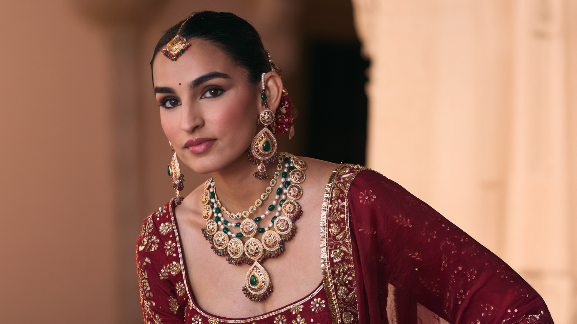 Delicate Polki artistry and rich enamel, brought together to create an heirloom piece of unparalleled beauty and grace.